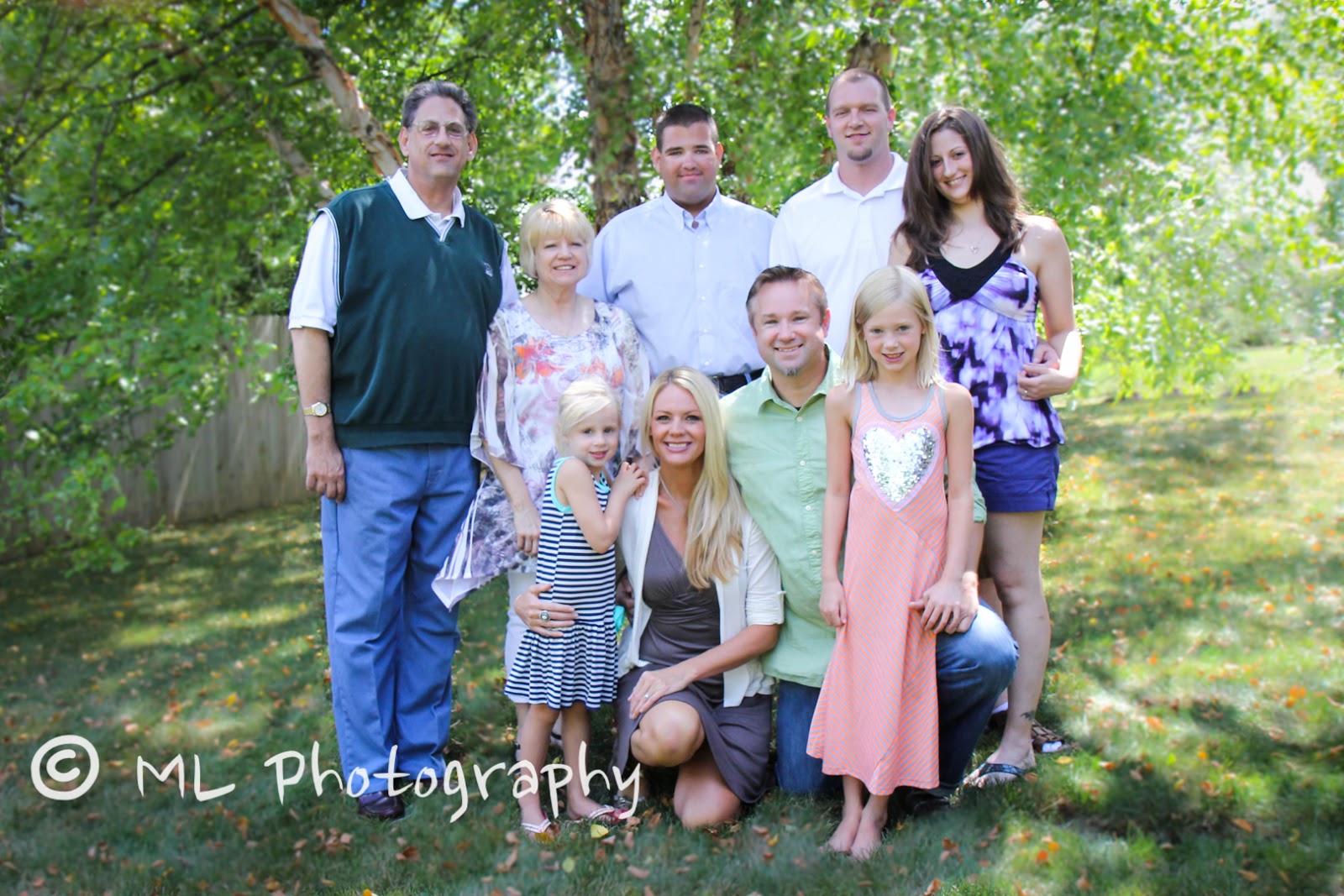 In this case, I came to a house which always makes it easy for a large group. It's not my first choice because I find myself limited with lighting, backgrounds, etc., but sometimes with A LOT of people and portraits you only need one really good spot! Too much moving around and you'd lose everyone's interest and take too long anyway. The trees in their backyard grabbed my interest emmediately for several reasons and this area worked out really well. We were strangers to each other initially and yet when I left I thought... it would be nice to see them again. That's always a great feeling.